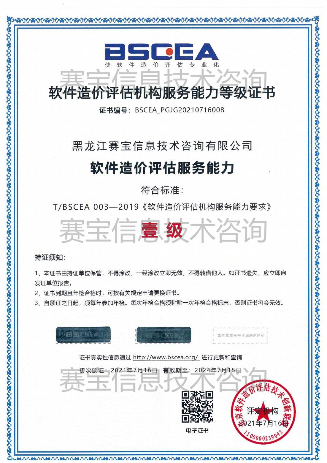 軟件造價(jià)評(píng)估服務(wù)能力壹級(jí)資質(zhì)